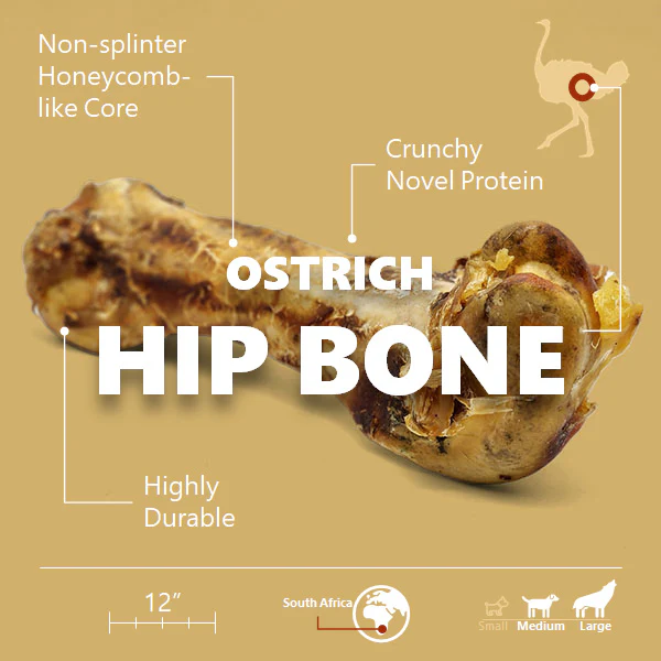 Ostrich Hip Bone (12" x 5"x 3”): The Durable, Flavor-Packed Chew for Medium & Large Dogs